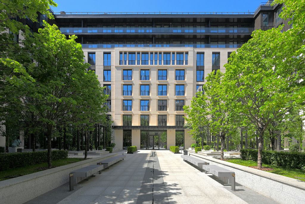 Внутренний двор с садом Клубного дома TURGENEV - оазис с зелеными газонами, мощеными тропинками, фонтанами, водными каналами и зонами для отдыха. Сад идеально вписан в пространство внутреннего двора.